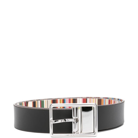 Black calf leather rectangular buckle reversible striped pattern silver-tone buckle leather belt size and fit - maximum length: 111.0 centimetres. minimum length: 101.0 centimetres. width: 3.0 centimetres.