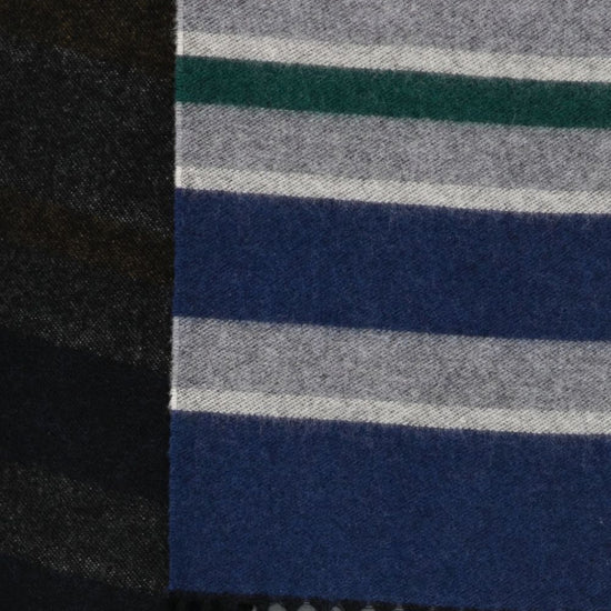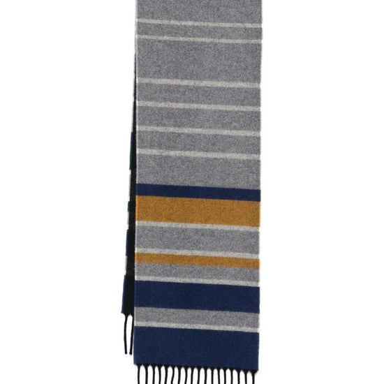 Grey colour-block design striped pattern fringed edge wool blend scarf