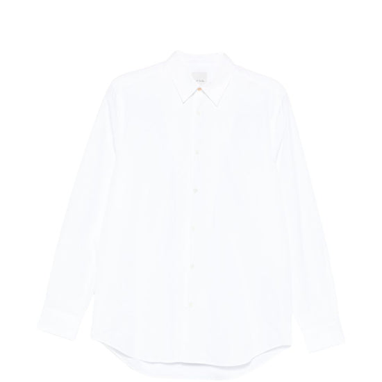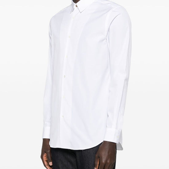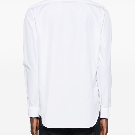 White button fastening long sleeves classic collar curved hem cotton shirt
