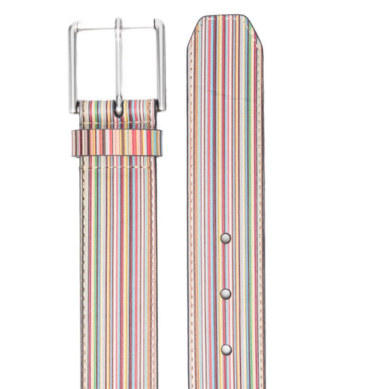 Blue calf leather silver buckle multiple stripes straight edges pin holes striped leather belt size and fit - maximum length: 92.0 centimetres. minimum length: 82.0 centimetres. width: 3.5 centimetres.