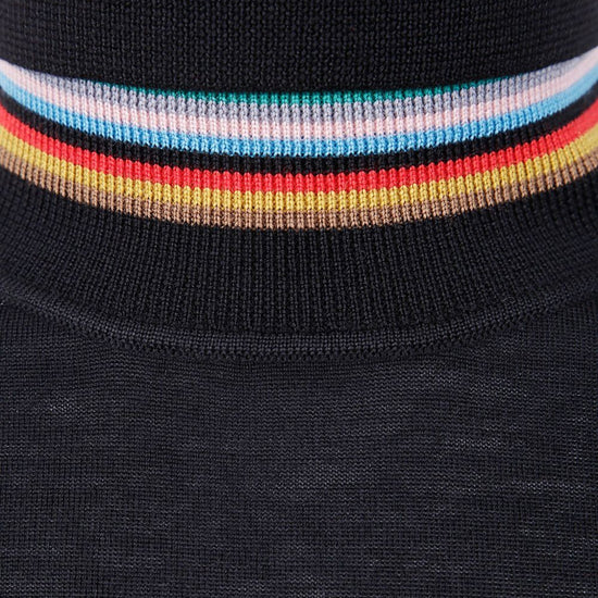 Black roll-neck multicolored stripe detail long sleeves ribbed cuffs and hem wool turtle-neck sweater