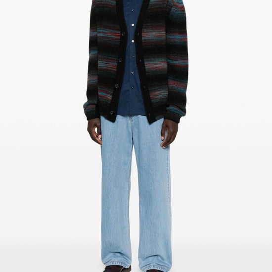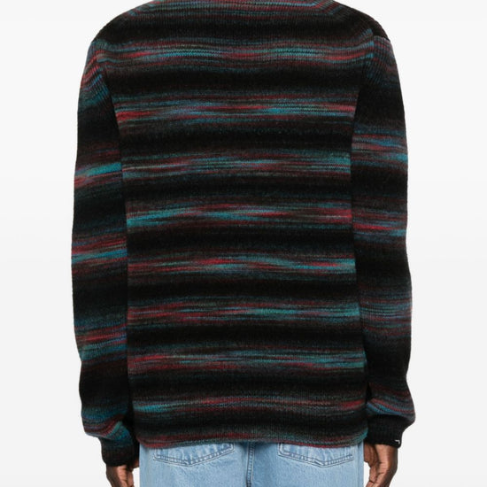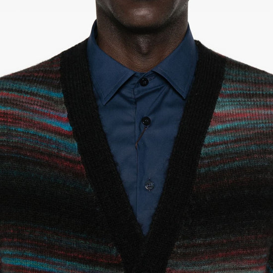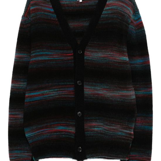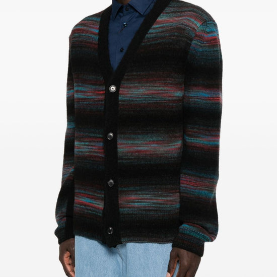 Black v-neck button fastening horizontal stripes long sleeves wool v-necked cardigan