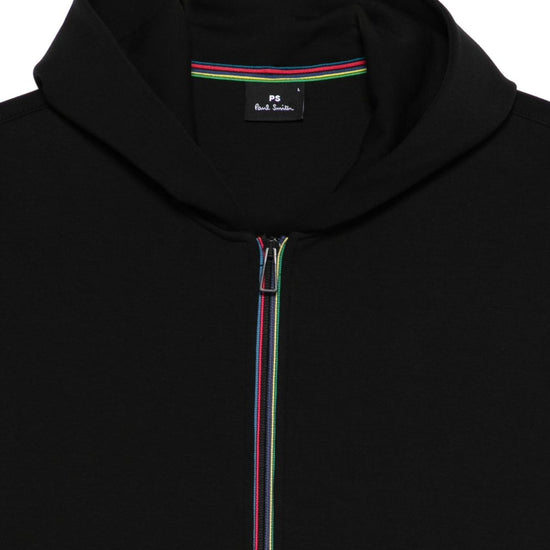 Black hooded neckline zip fastening long sleeves ribbed cuffs zipped hoodie