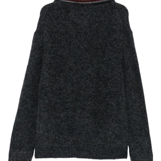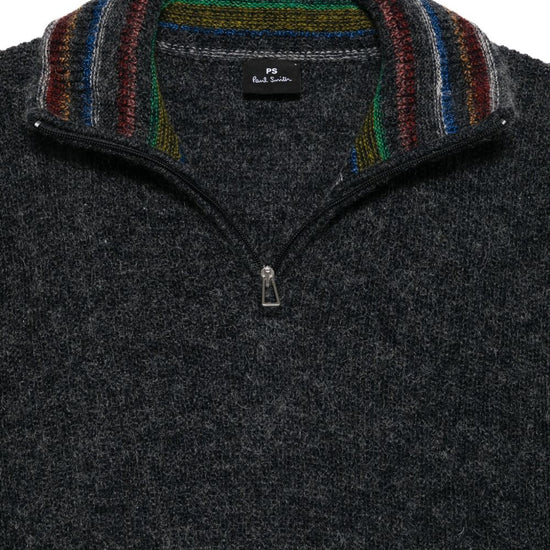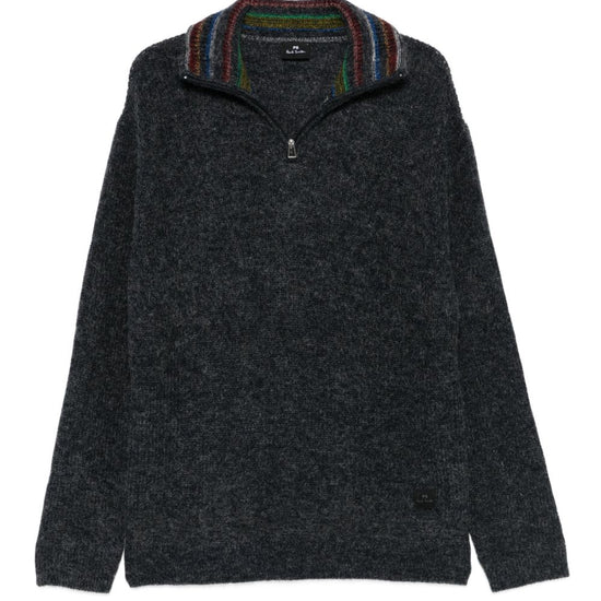 Grey half-zip fastening long sleeves ribbed cuffs striped collar half-zio sweater