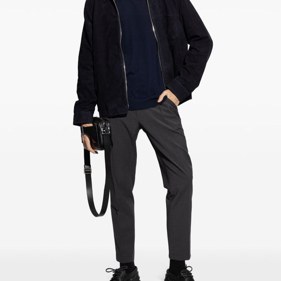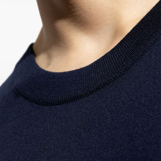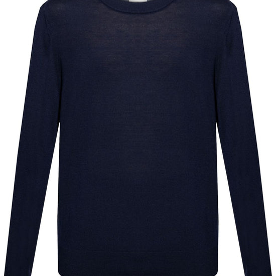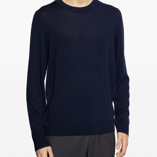 Navy blue crew neck long sleeves ribbed trim wool crewneck sweater