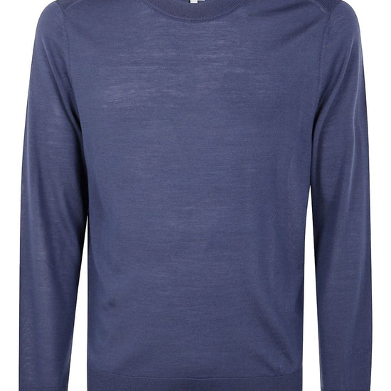 Petrol blue merino wool crew neck long sleeves ribbed cuffs ribbed hem wool crewneck sweater