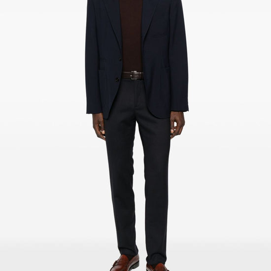 Dark brown round neck long sleeves ribbed cuffs straight hem wool crewneck sweater