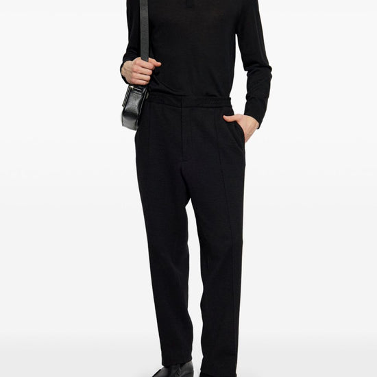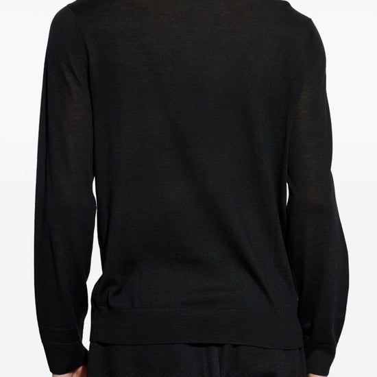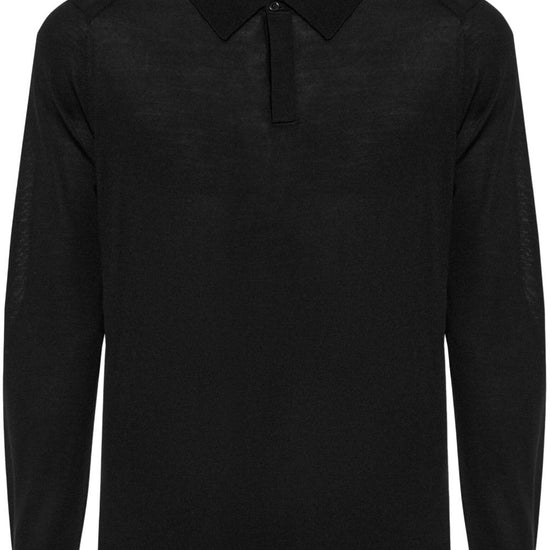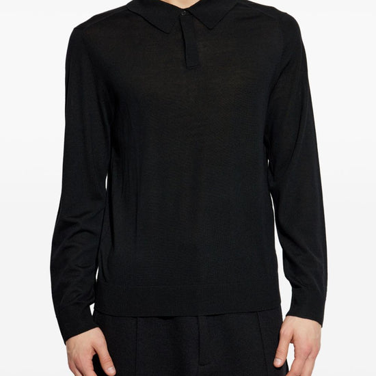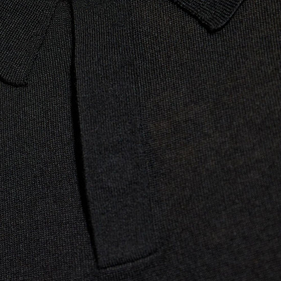 Black short front button fastening long sleeves ribbed cuffs and hem wool polo shirt