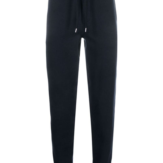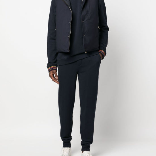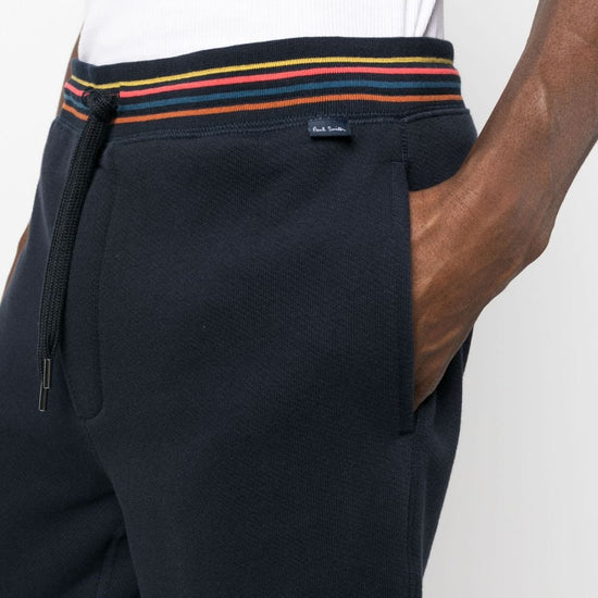 Elasticated ankle hems, elasticated drawstring waist and two pockets with inserts. signature stripe cotton sweatpants