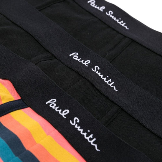 Black/multicolour organic cotton blend stretch-design elasticated logo waistband artist stripe pattern pack of three be sure before opening, as socks and hosiery can only be returned in their original, unopened packaging. artist stripe trunk - 3 pack