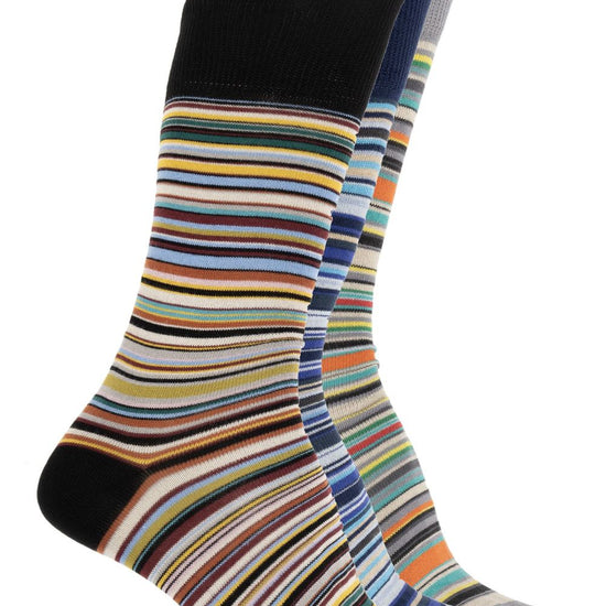 Multicolour cotton three-pair set horizontal stripe pattern contrasting toe mid-calf length be sure before opening, as socks and hosiery can only be returned in their original, unopened packaging. signature stripe socks - 6 pack
