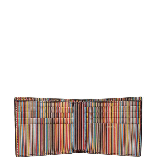 Black bi-fold design vertical stripe pattern internal card slots leather bifold wallet size and fit - width 4,21 in / 10,7 cm height 3,7 in / 9,4 cm.