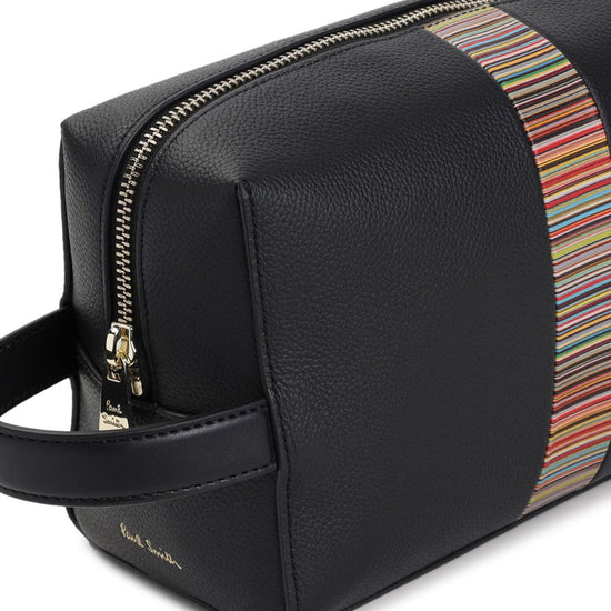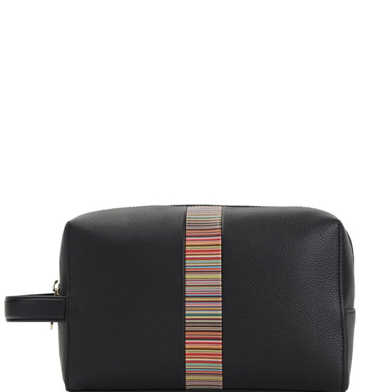 Black top zip fastening signature stripe detail to the rear signature stripe leather washbag