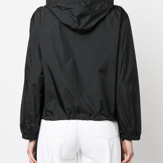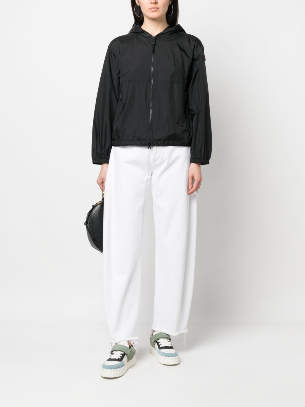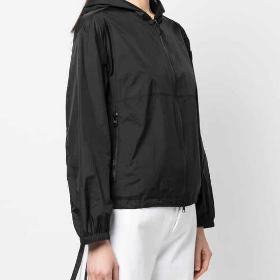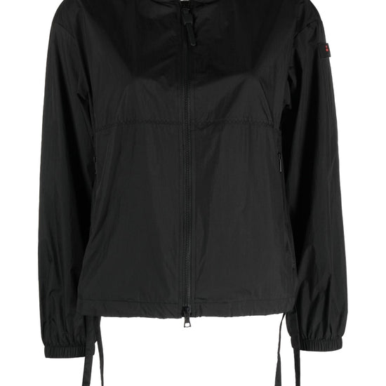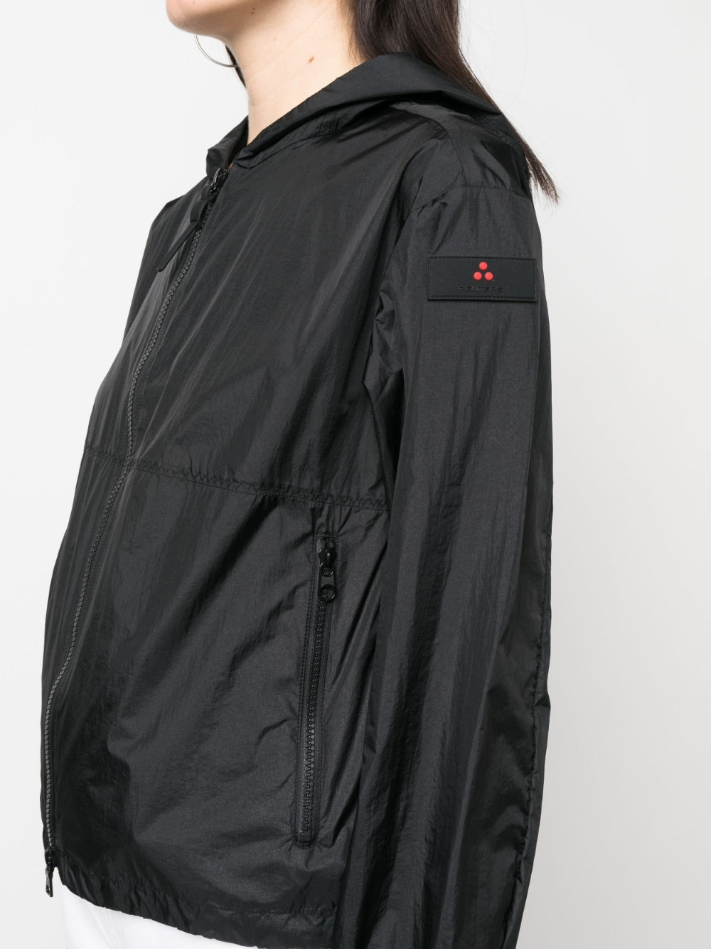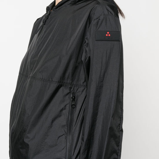 Logo-patch hooded jacket from peuterey featuring licorice black, classic hood, front zip fastening, long sleeves, logo patch at the sleeve, elasticated cuffs and two side zip-fastening pockets. corto + zip trasversale tanner hooded jacket