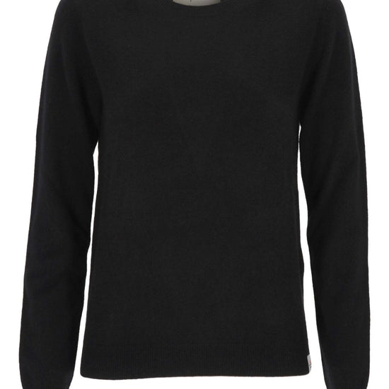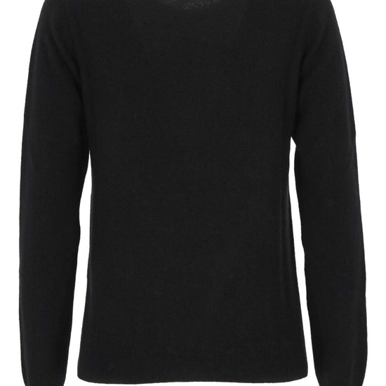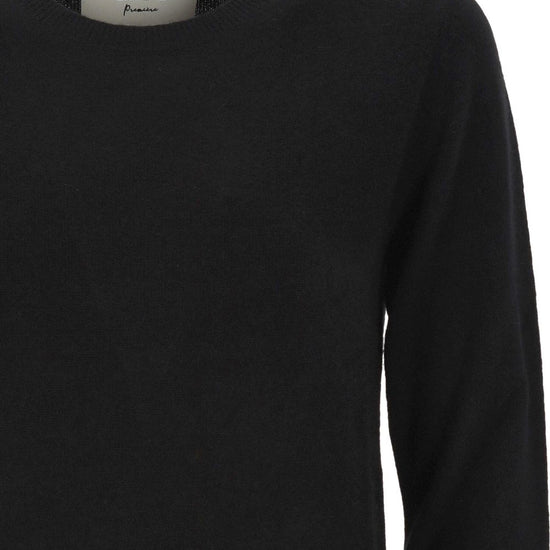 Black crew neck long sleeves ribbed hem ribbed cuffs semur cashmere sweater