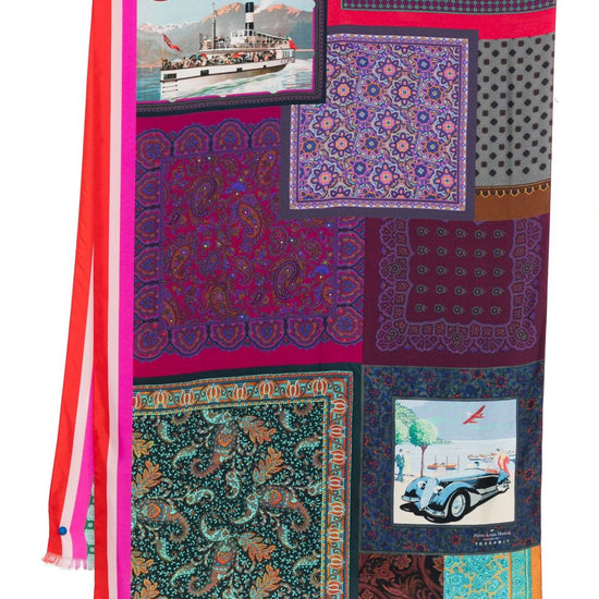 Multicolor paisley pattern silk fringed edges lago di como silk printed scarf size and fit - length: 200.0 centimetres. width: 65.0 centimetres.
