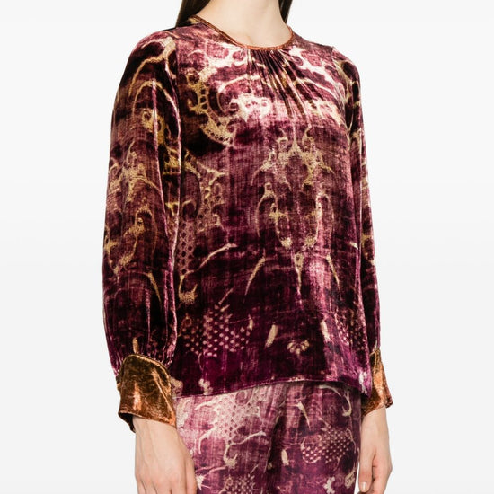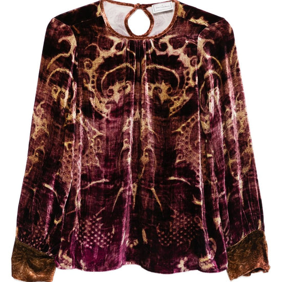 Red velvet texture keyhole detail long sleeves cuffed sleeves silk blend shirt