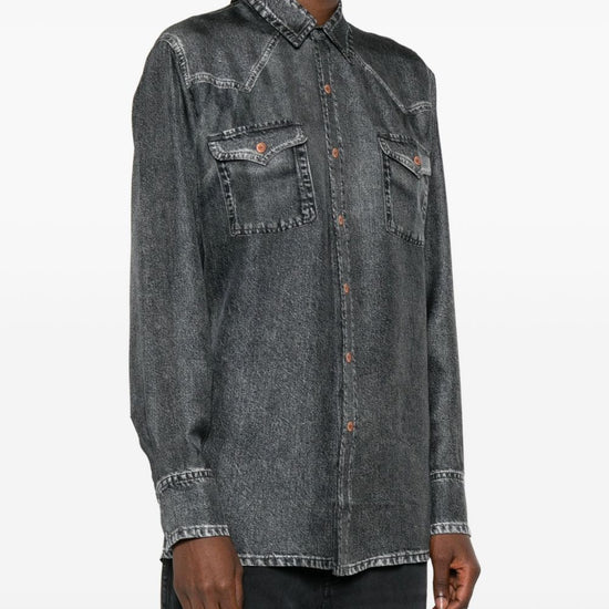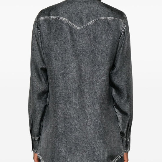 flap pockets denim print silk shirt size and fit - .