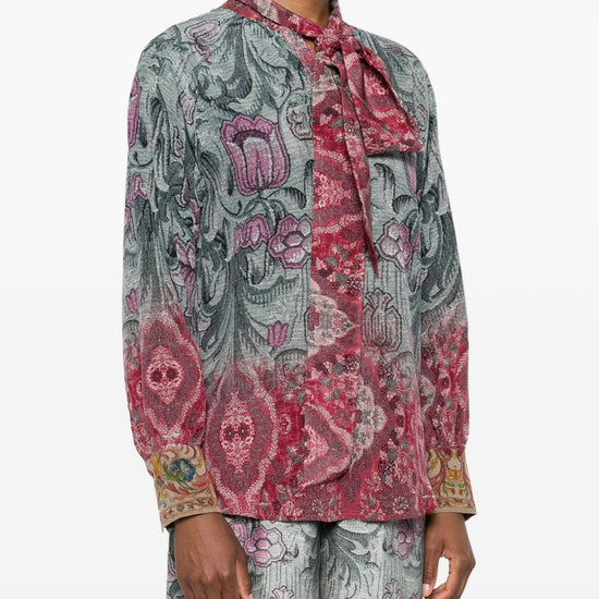 buttoned cuffs printed silk shirt
