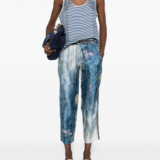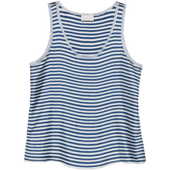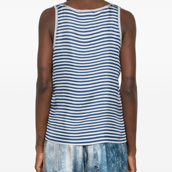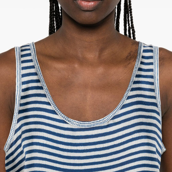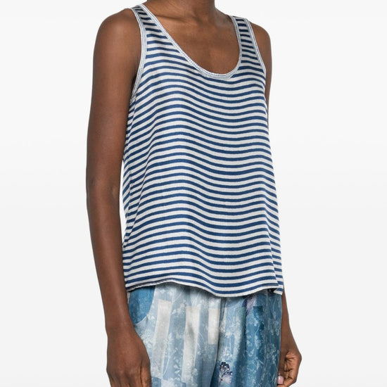 Blue striped pattern scoop neck sleeveless striped silk tank top