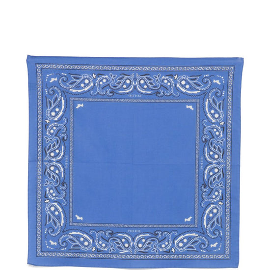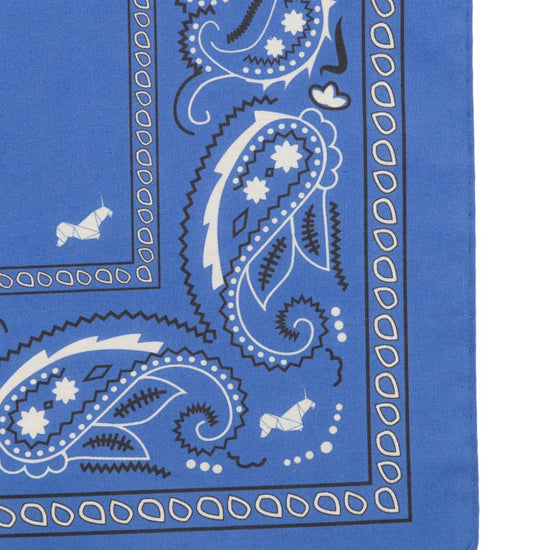 white details blue bandana size and fit - length: 50.0 centimetres. width: 50.0 centimetres.