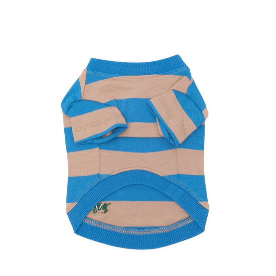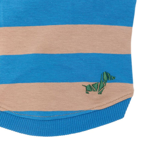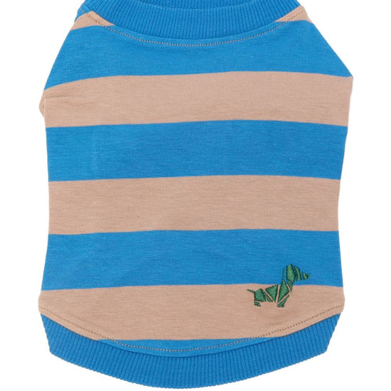Blue striped embroidered detail ribbed hem short sleeves round neck calypso - cotton t-shirt size and fit - size conversion. 25 = xxs. 30 = xs. 35 = s. 40 = m. 45 = l.