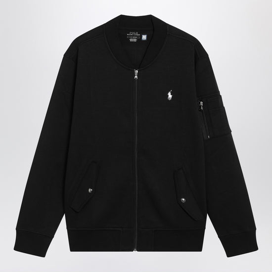 Polo ralph lauren bomber-style sweatshirt in black cotton blend knit, featuring a front zip closure, long sleeves, one with an applied zip pocket, contrasting logo embroidery on the chest, two flap pockets with press studs on the front and ribbed edges. size and fit - model wears size l model measurements: height: 185 cm chest: 86 cm waist: 72 cm hips: 93 cm