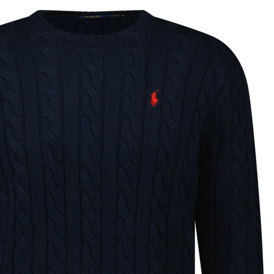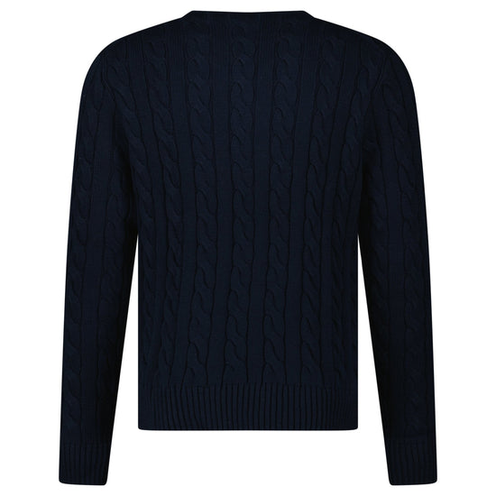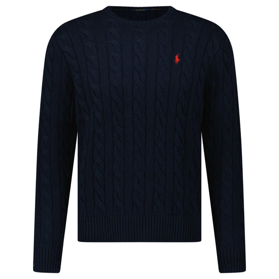 elevate your knitwear collection with the polo ralph lauren cable knit sweater in navy. crafted from 100% premium cotton, this timeless piece brings together two of ralph lauren’s most iconic design elements — the signature cable-knit texture and the embroidered pony logo on the chest. soft, breathable, and effortlessly stylish, it’s perfect for layering across all seasons.