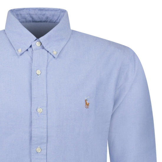 refine your wardrobe with the polo ralph lauren custom fit oxford shirt in blue, a timeless essential that embodies the brand’s heritage of quality and sophistication. crafted from pure cotton oxford fabric, this shirt delivers a perfect balance of structure and softness, tailored in a custom fit that sits between classic and slim for a modern silhouette. finished with the signature embroidered pony on the chest, it’s a versatile piece for both smart and casual occasions.