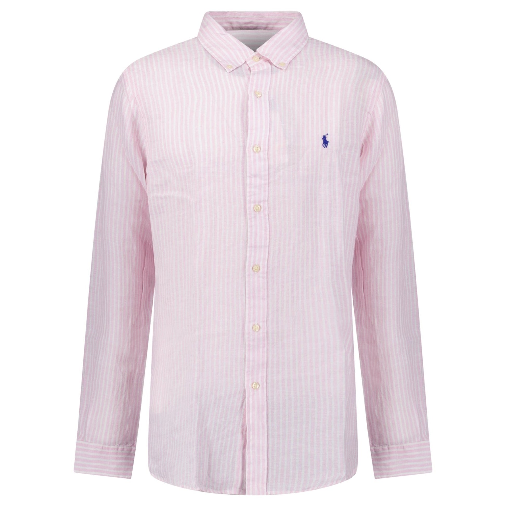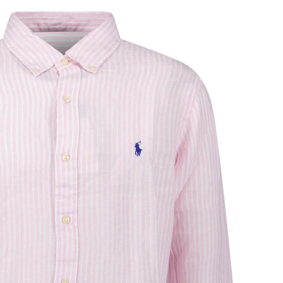 Polo Ralph Lauren Custom Fit Stripe Linen Shirt in Pink/White