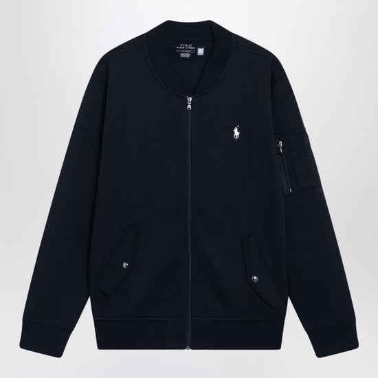 Bomber-style sweatshirt by polo ralph lauren in navy cotton blend knit, featuring front zip closure, long sleeves—one with zip pocket—contrasting embroidered logo on the chest, two front flap pockets with snap buttons, and ribbed trims. size and fit - model wears size l model measurements: height: 189 cm chest: 104 cm waist: 78 cm hips: 95 cm