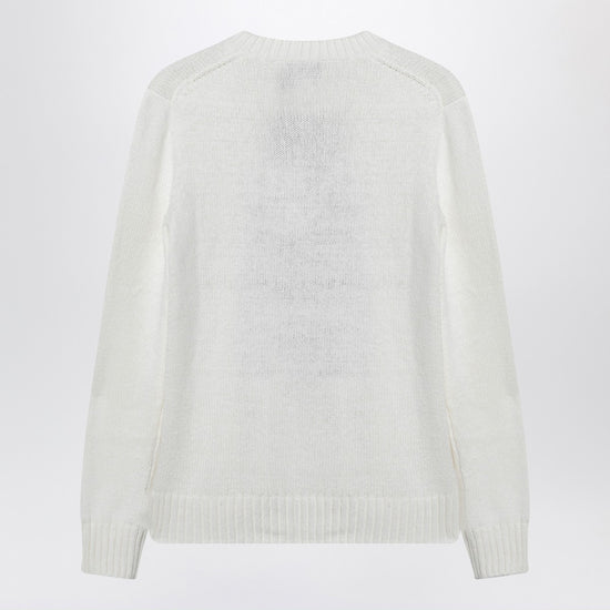 Crew-neck sweater by polo ralph lauren in white cotton-linen blend, featuring long sleeves, polo bear intarsia on the front, side slits, and ribbed trims. size and fit - model wears size s model measurements: height: 179 cm chest: 82 cm waist: 65 cm hips: 90 cm
