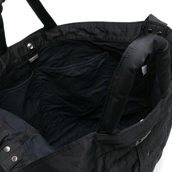 Black logo patch to the front press-stud fastening two rolled top handles adjustable shoulder strap front zip-fastening pocket contrast lining internal patch pockets main compartment silver-tone hardware mile 2way nylon tote bag