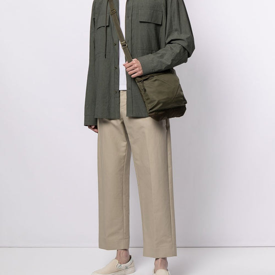 Olive green square shape top zip fastening front zip-fastening compartment adjustable shoulder strap force 2way nylon crossbody bag size and fit - height: 34.0 centimetres. strap: 53.0 centimetres. width: 29.5 centimetres.