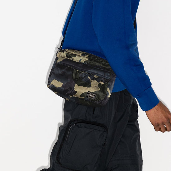 Woodland khaki camouflage print logo patch to the front two front patch pockets adjustable detachable shoulder strap top zip fastening main compartment internal slip pocket internal logo patch counter shade nylon crossbody bag size and fit - depth: 4.5 centimetres. height: 18.0 centimetres. strap: 58.0 centimetres. width: 28.0 centimetres.