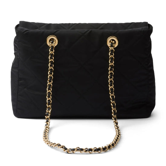 elevate your everyday style with the prada recycled nylon tote. crafted with prada’s signature minimalist aesthetic, this elegant tote combines sustainability with sophistication. designed for both function and flair, it features a spacious interior and timeless quilted finish—perfect for everything from weekend getaways to city shopping.