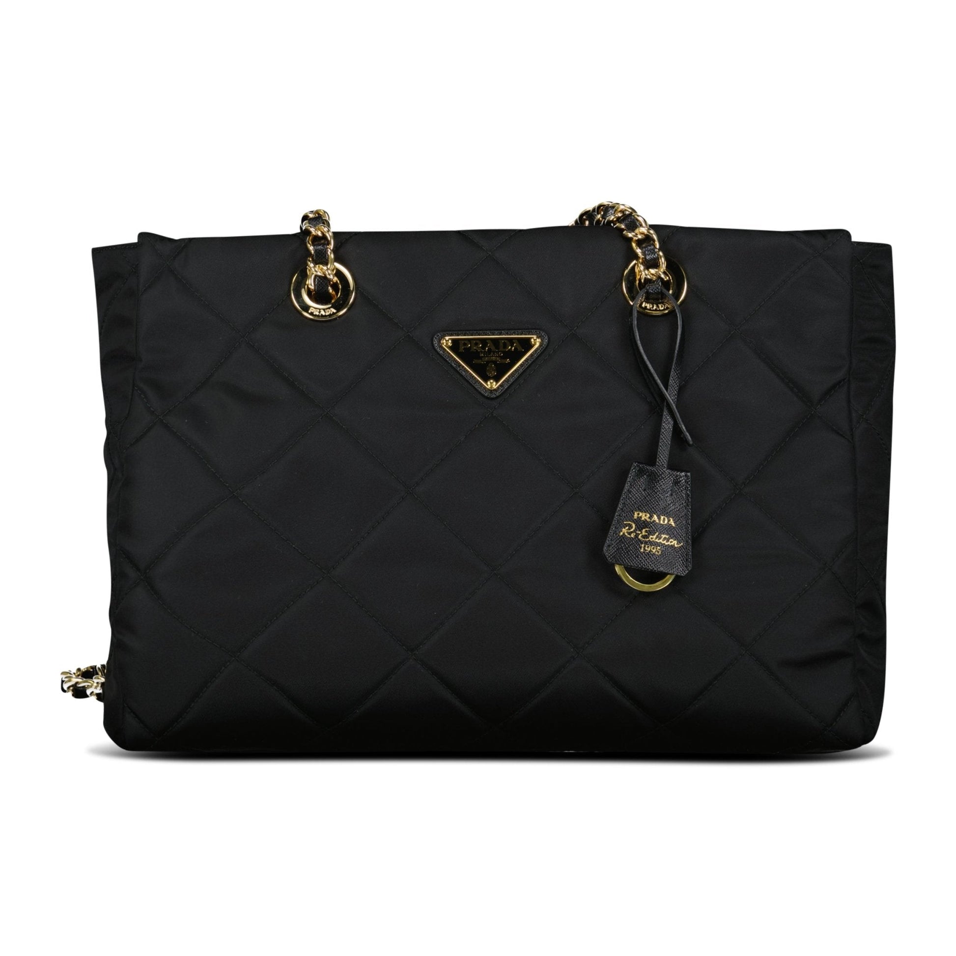 elevate your everyday style with the prada recycled nylon tote. crafted with prada’s signature minimalist aesthetic, this elegant tote combines sustainability with sophistication. designed for both function and flair, it features a spacious interior and timeless quilted finish—perfect for everything from weekend getaways to city shopping.