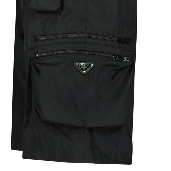 elevate your casual wardrobe with the prada re-nylon bermuda shorts. crafted from 100% recycled nylon, these mid-weight shorts offer a clean, structured look with a subtle stretch for comfort. finished with prada’s signature brand plaque at the side, they deliver an effortlessly refined take on everyday dressing.