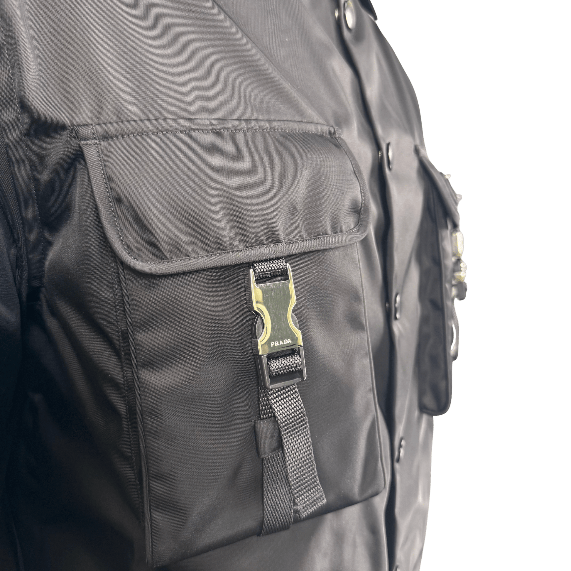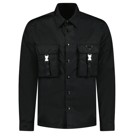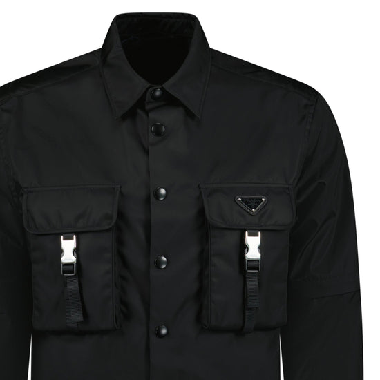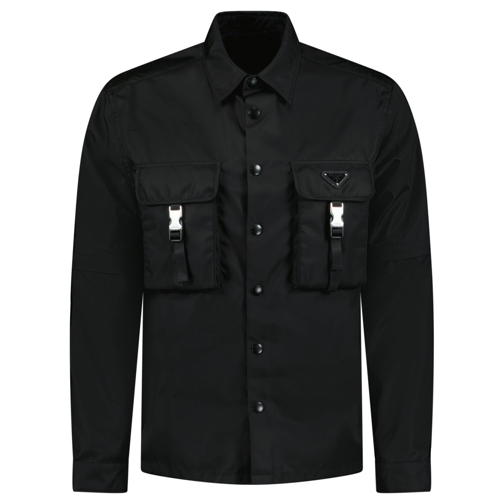 elevate your wardrobe with the prada re-nylon shirt in black. a true testament to prada’s pioneering approach to modern luxury, this shirt is crafted from 100% recycled polyamide—reinventing the brand’s signature nylon with a sustainable edge. designed with a sleek silhouette and tailored details, it blends innovation with timeless italian craftsmanship.