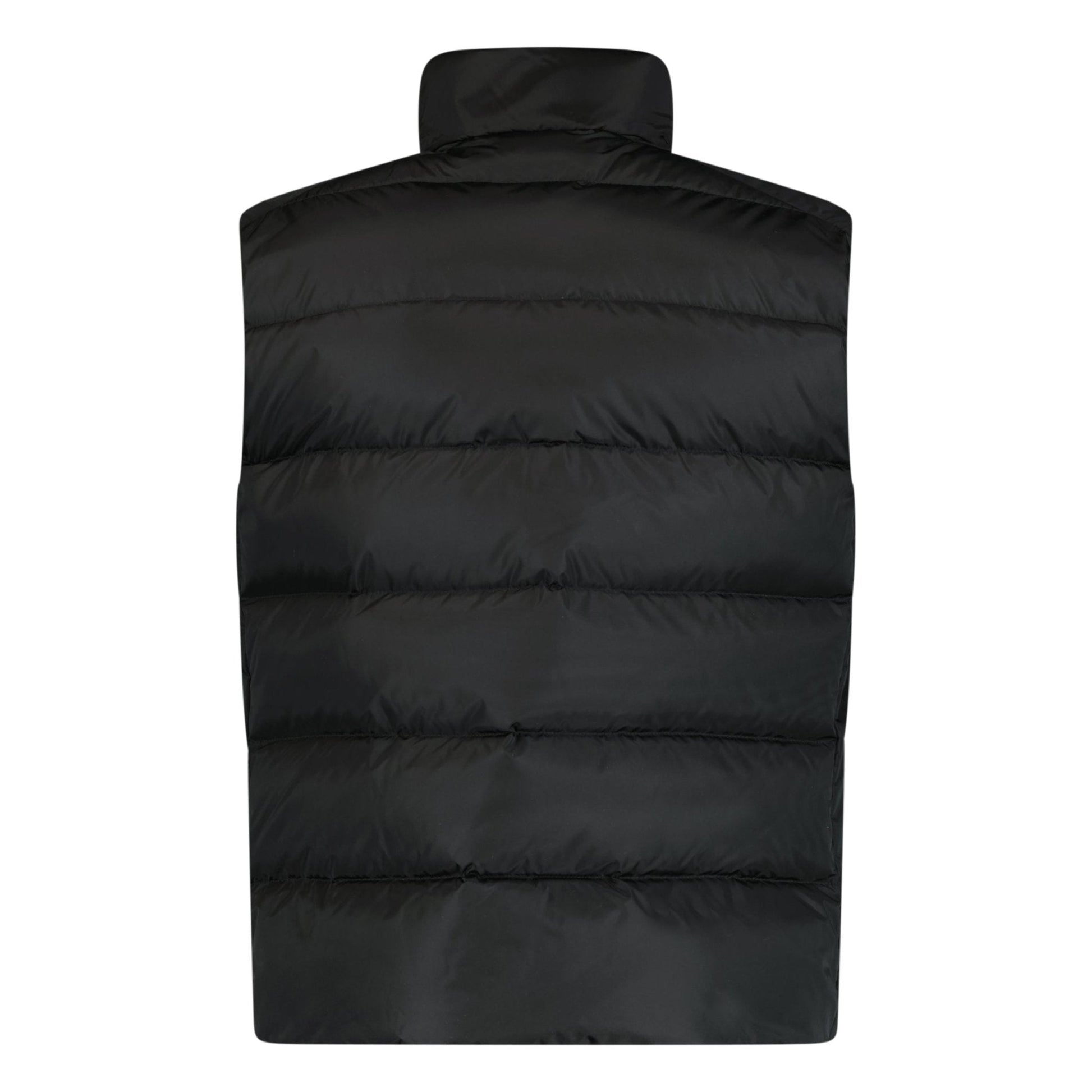 elevate your outerwear collection with the prada triangle logo padded re-nylon vest, a piece that combines style with a commitment to sustainability. this vest features a streamlined, padded silhouette made from re-nylon, an innovative fabric crafted from recycled, purified plastics collected from the ocean. highlighted by its sleek lines and accented with an enameled metal triangle logo, this vest brings a modern edge to any ensemble.