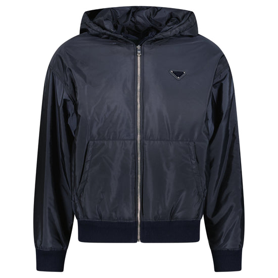 Prada Triangle Logo Zip Hooded Jacket Navy