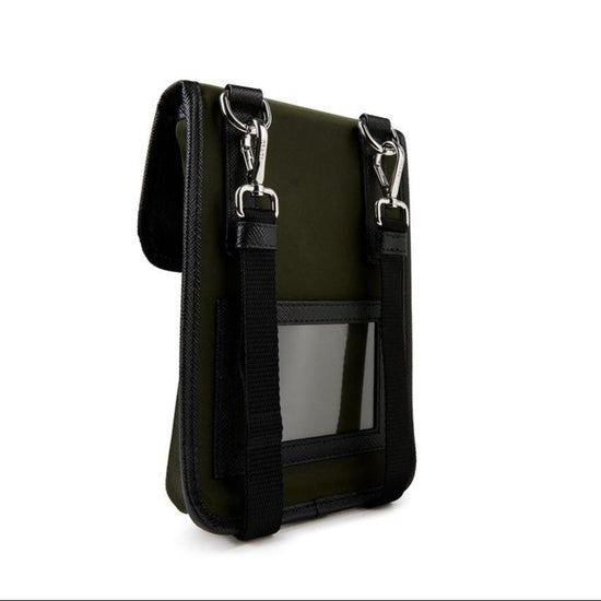 elevate your everyday style with the prada utility cross body bag in military green. compact yet highly functional, this versatile piece combines a military-inspired aesthetic with prada’s signature luxury craftsmanship. crafted from durable nylon with black leather trims, it delivers both resilience and refinement, making it perfect for daily wear.