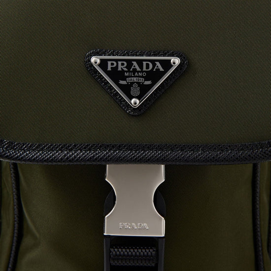 the design is anchored by prada’s iconic triangular logo plaque on the front flap, while the secure buckle closure ensures your essentials remain safe. an adjustable black nylon strap allows for a comfortable crossbody fit, offering practicality without sacrificing style. compact in size but thoughtfully designed, this bag transitions seamlessly from casual outings to smarter occasions.