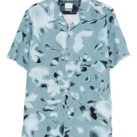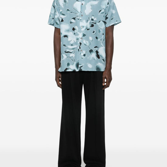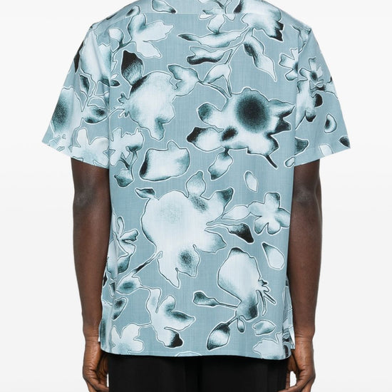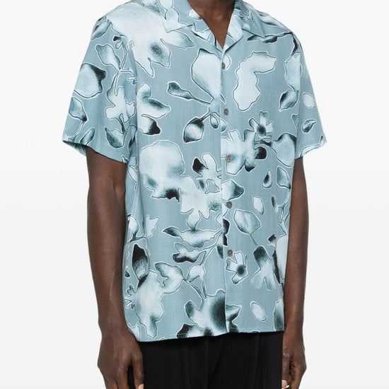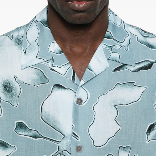 Clear blue floral print button closure short sleeves printed shirt