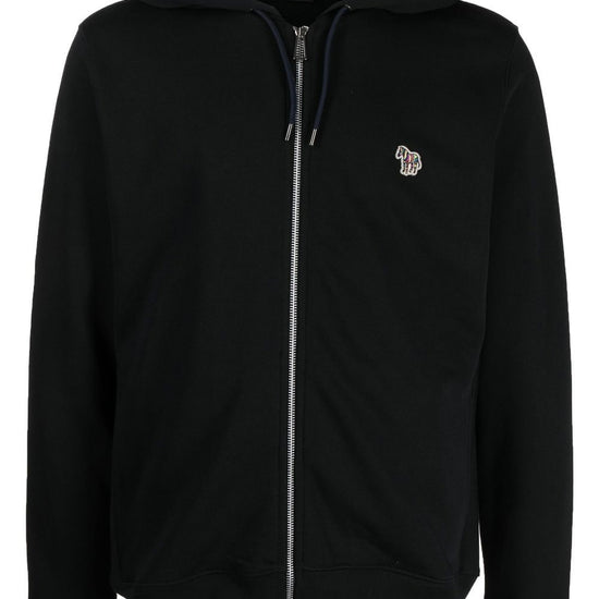 Organic cotton zip hoodie from ps paul smith featuring black, cotton, signature zebra motif, drawstring hood, front zip fastening, elasticated cuffs and elasticated hem. zebra logo cotton hoodie