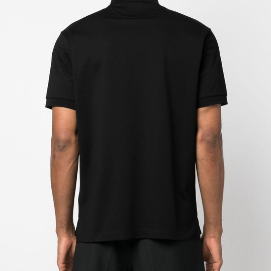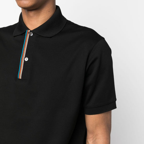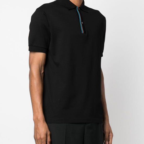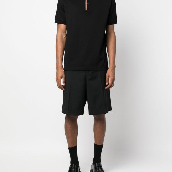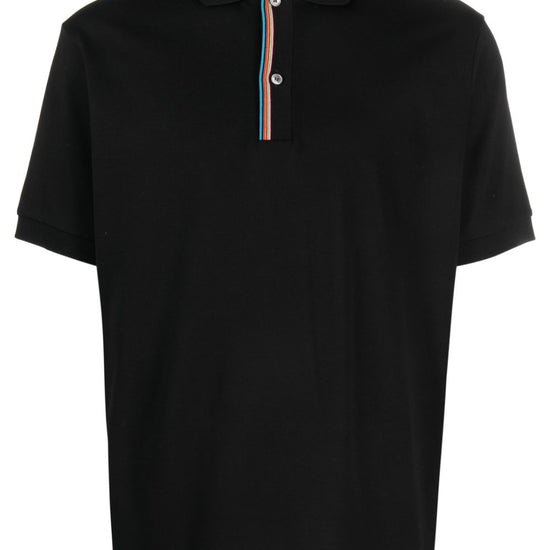 Black cotton polo shirt, front buttoning, polo collar and straight hem. signature stripe cotton polo shirt