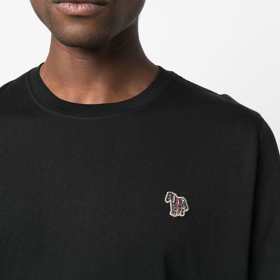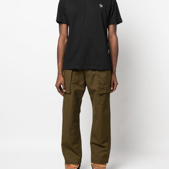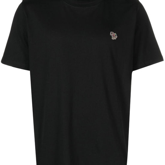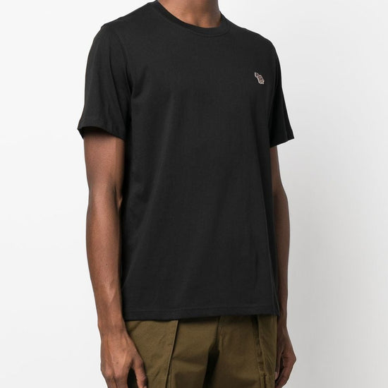 Deep black, organic cotton, logo patch on the chest, round neck, short sleeves and straight hem. zebra logo cotton t-shirt