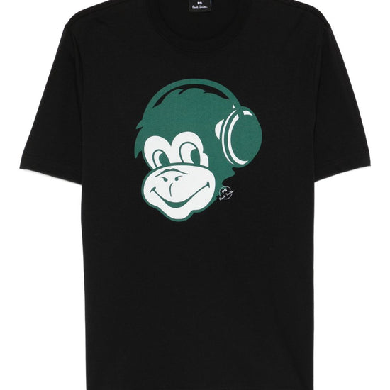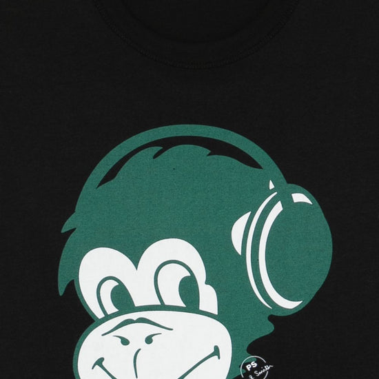 Black crew neck short sleeves monkey headphone cotton t-shirt