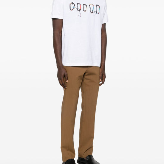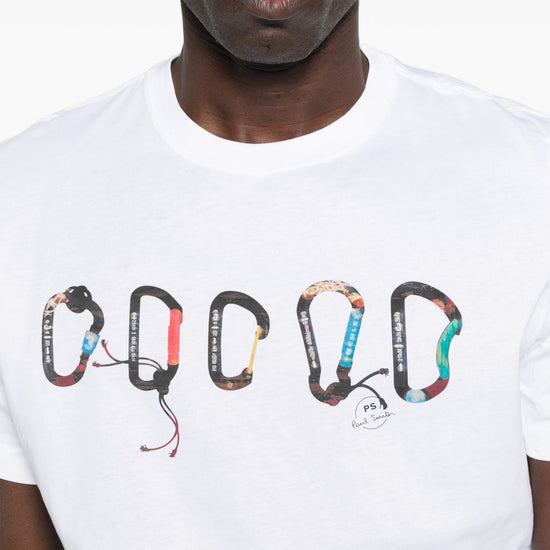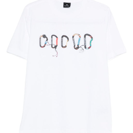 White graphic print round neck short sleeves carabiner organic cotton t-shirt