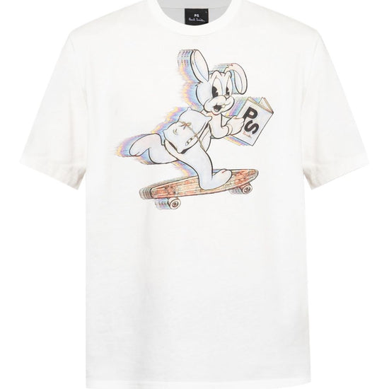 White logo print to the front crew neck short sleeves straight hem skate bunny cotton t-shirt